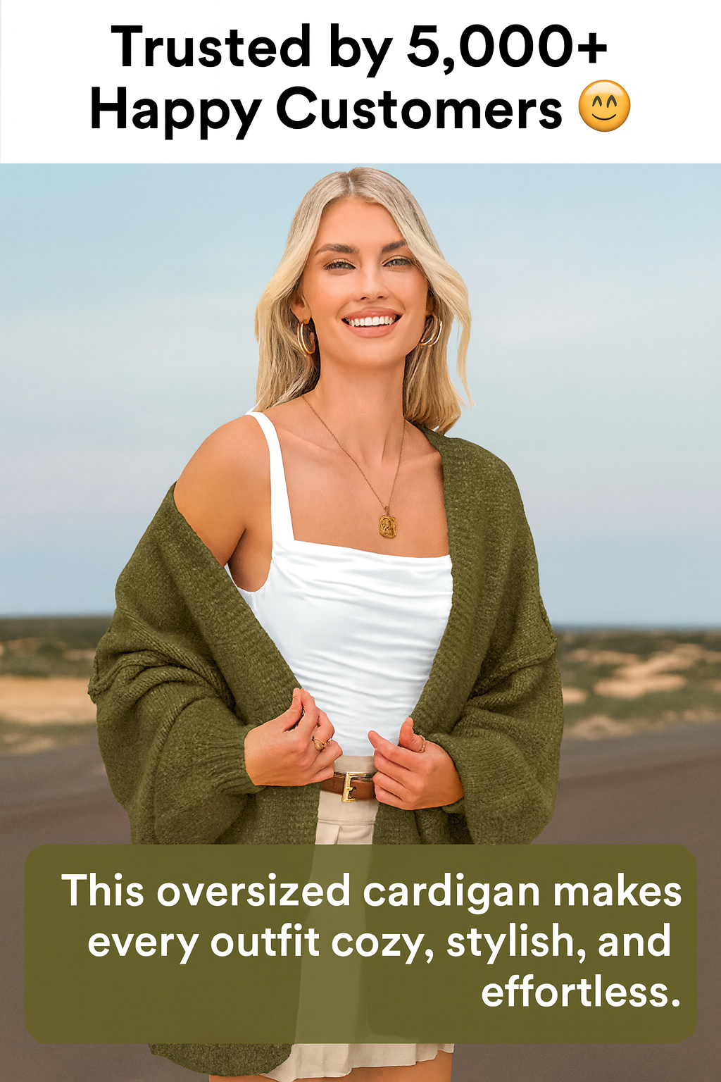 Style isn’t just about looks—it’s about how you feel. Our oversized cardigan has helped countless women stay warm, stylish, and confident—whether it’s for work, travel, or cozy nights out. Soft, lightweight, and effortlessly chic, it’s the perfect layer to make every moment more comfortable and memorable.